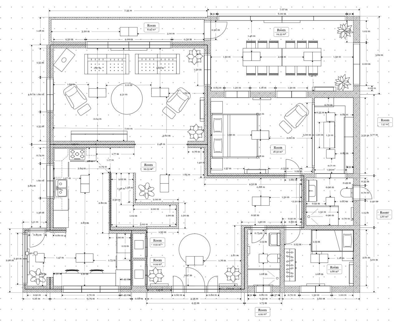 The outdoor experience is enhanced by an independent building next to the 10 x 4.5-meter pool. This “guest house” has its own kitchen, dining area, bathroom, and bedroom, providing total privacy. The wellness area is completed with a pool house that includes pre-installation for heating and a private Hammam.