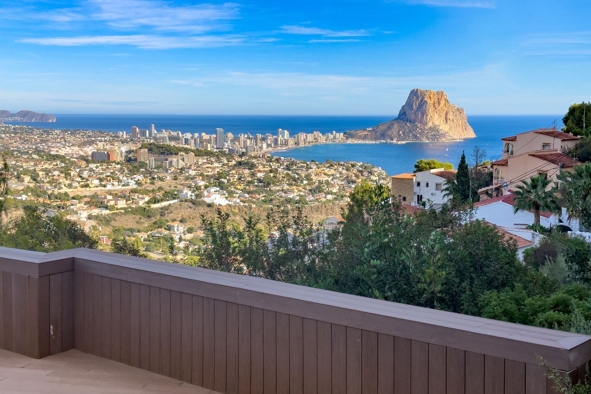 Dit grote huis in Maryvilla biedt uitzicht op de bergen, de zee en de Peñón de Ifach.