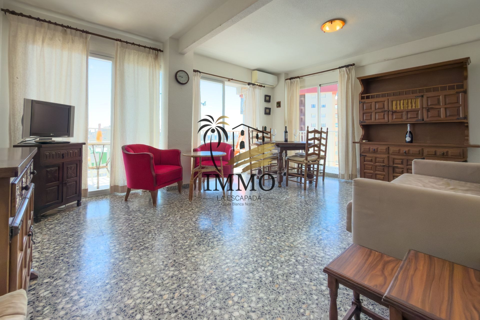 This apartment in Calpe stands out for its breathtaking views of Cala Calalga, La Fossa Beach, the Peñón de Ifach, and the Salinas of Calpe – a true privilege to enjoy the Mediterranean every day.