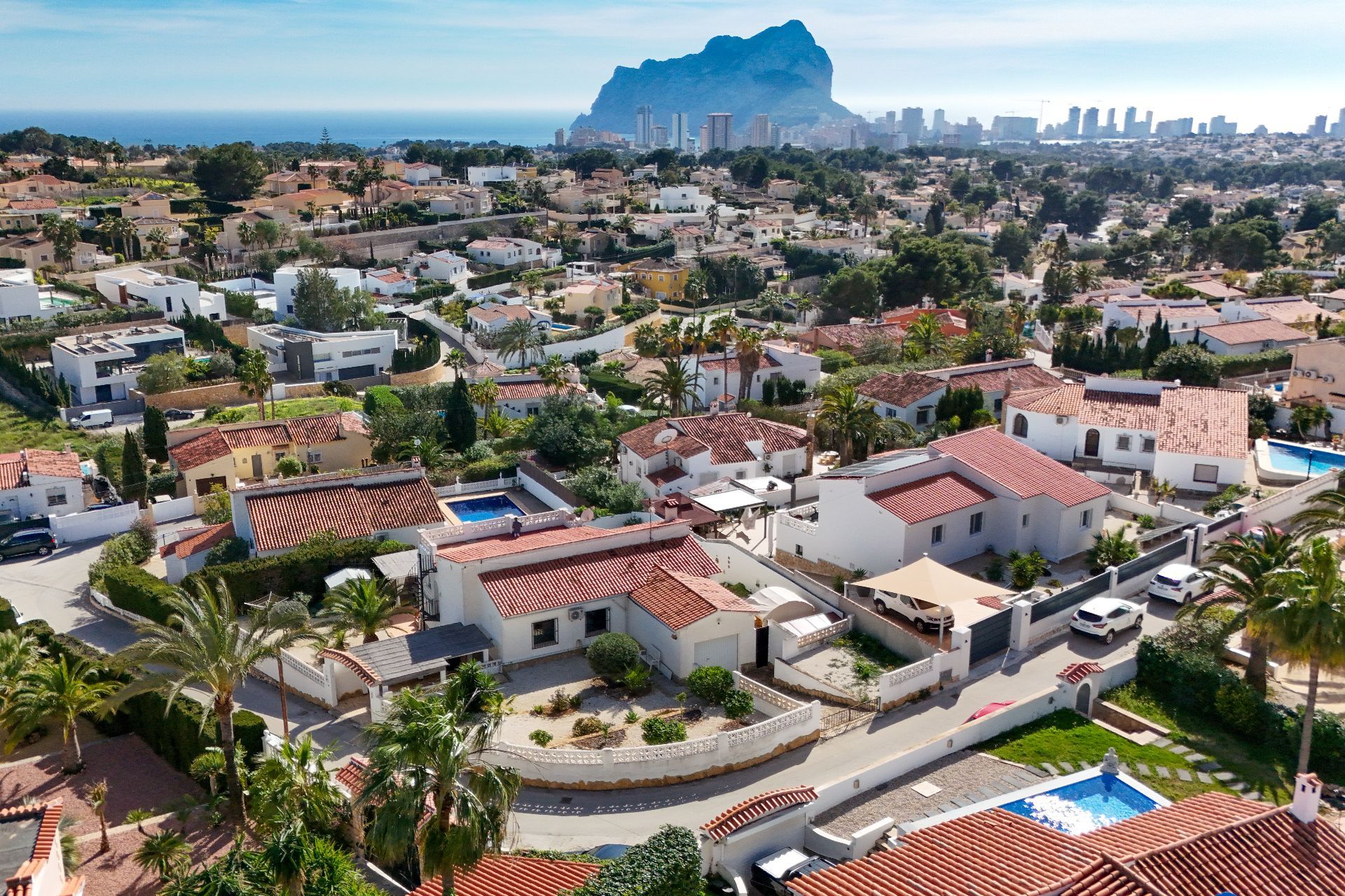 This porch not only connects the living spaces but also invites you up to the solarium — a privileged spot to unwind, enjoy the peace and take in the breathtaking views of the iconic Peñón de Ifach, a true delight for the senses.