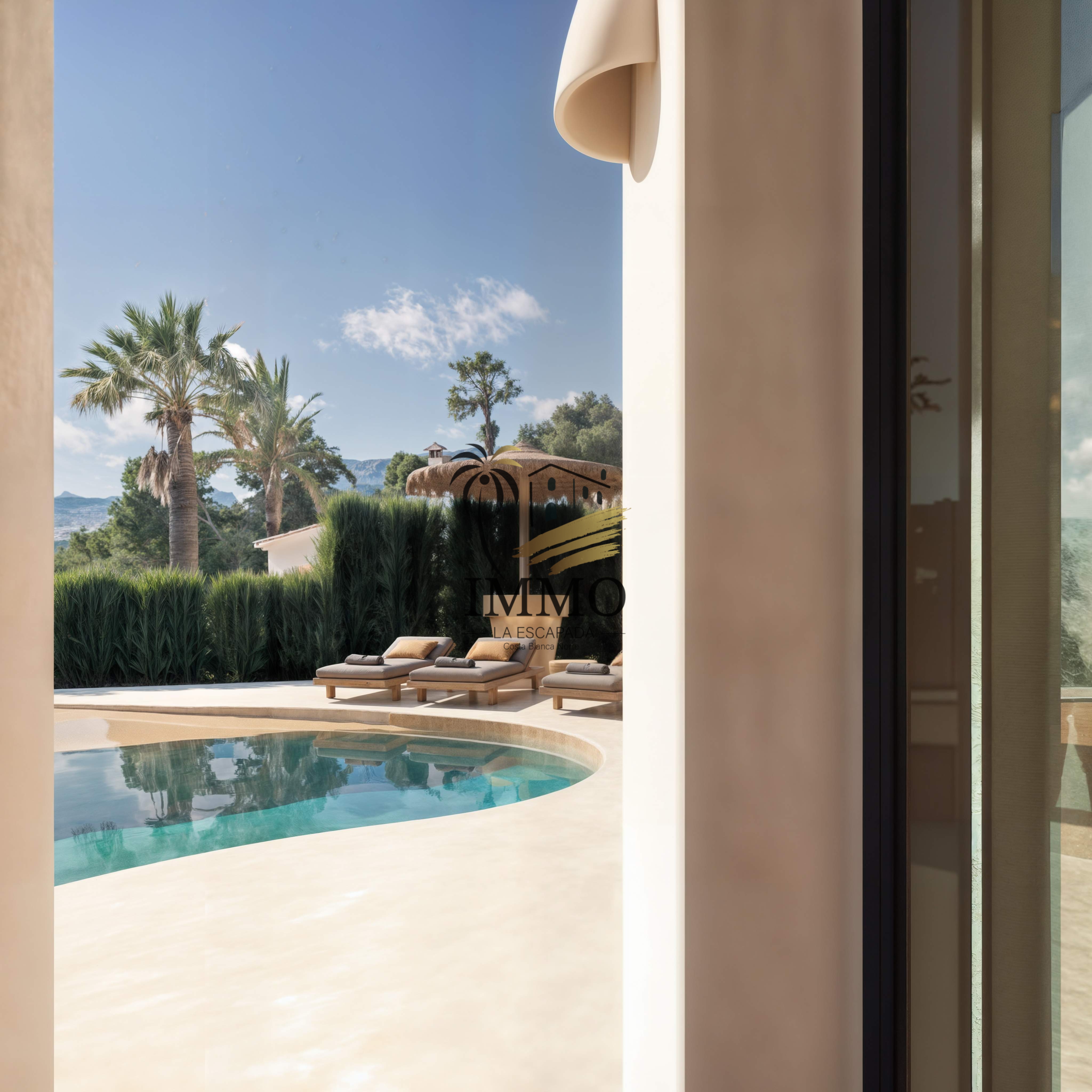 Discover this exceptional Ibiza-style villa project in one of Moraira’s most desirable residential areas. This elegant property will be completely transformed through a high-end renovation, creating a luxurious Mediterranean home with breathtaking panoramic views.